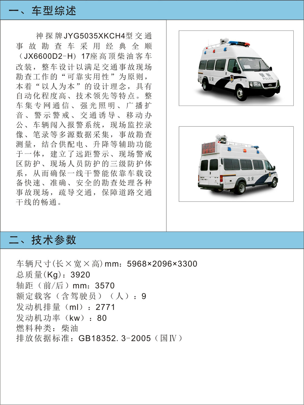 推薦標準為GA/T799-2008 《現(xiàn)場勘查車技術條件》