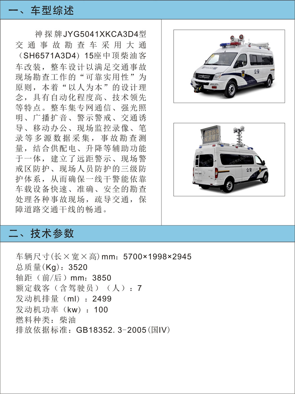JYG5041XKCA3D4型交通事故勘查車