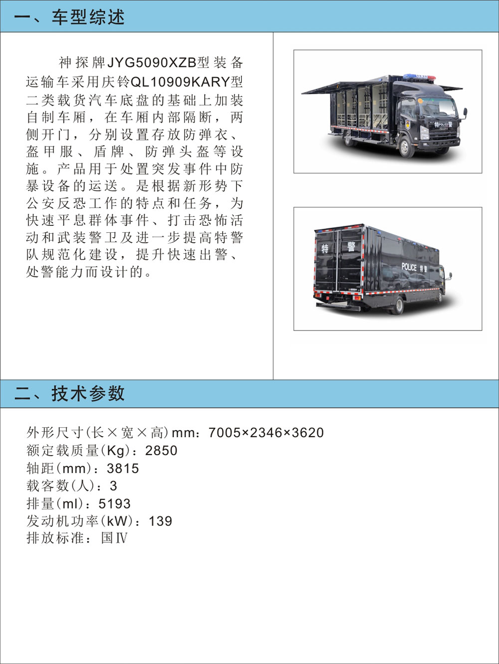 JYG5090XZB型裝備運輸車
